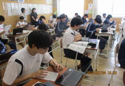 単細胞生物と多細胞生物 2−C理科 公開日 2024/07/04 更新日 2024/07/04 芝園の一日 7月4日(木) 3限 2−Cの理科の授業風景です。「単細胞生物と多細胞生物」の学習をしています。調べてわかったこと、疑問に思うことなどを端末で共有しています。様々な視点で、生徒は課題に取り組んでいます。