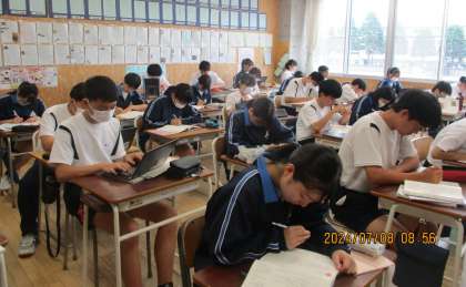 集中しています! 3−C国語 公開日 2024/07/08 更新日 2024/07/08 芝園の一日 7月8日(月) 1限 3−Cの国語の授業風景です。一人一人が自分の課題に集中しています。さすが、3年生!