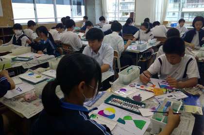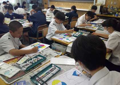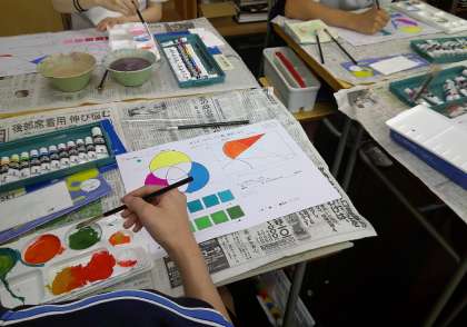 グラデーションもバッチリ 1−B美術 公開日 2024/07/17 更新日 2024/07/17 芝園の一日 7月17日{水} 1限 1−Bの美術の授業風景です。ポスターカラーの塗り方を学習しています。グラデーションもバッチリですね。