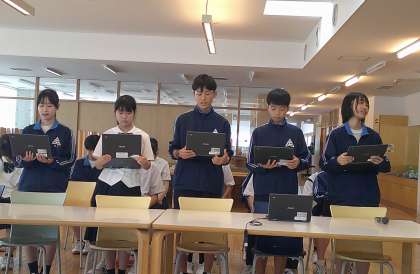 まずは、生徒会、学年生徒会から今学期の取組についての発表をしました。分かりやすくまとめたスライドに、奨学会の方からも「すごい!としか言いようがないな」「時間を見つけて、よく作成したね」とお褒めの言葉をいただきました。