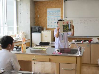 栄養教諭の先生から、好き嫌いなく食べることの大切さを「野菜クイズ」を取り入れながらお話しいただきました。