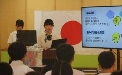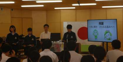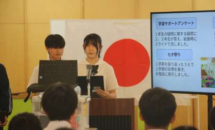 生徒会活動の振り返り その1 公開日 2024/07/24 更新日 2024/07/24 芝園の一日 7月24日{水} 受賞報告のあと、絵師都会執行部、専門委員会、学年GSSから「1学期の活動の振り返り」を発表しました。