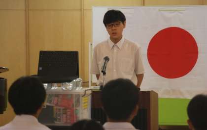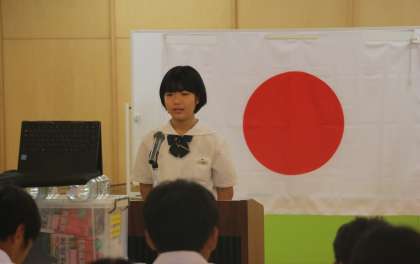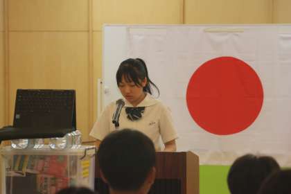 終業式の前に、各学年の代表生徒が「1学期を振り返って」の作文発表をしました。リーダーに挑戦したこと、「社会に学ぶ『14歳の挑戦』」で学んだことなど、一人一人がチャレンジして得た学びを堂々と発表しました。3名の生徒のみなさん、お疲れさまでした。