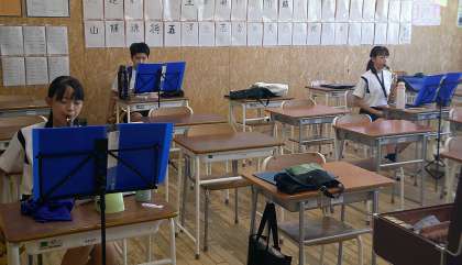吹奏楽部の活動の様子です。黙々とパート練習!