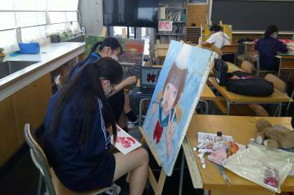 3年生は油絵に挑戦。いよいよ最終段階に入っています!