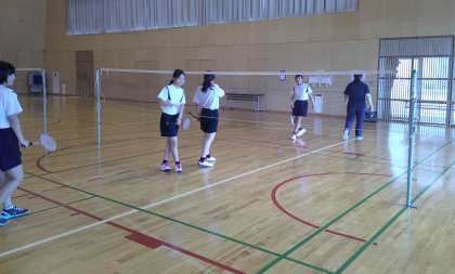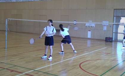 バドミントン部の活動の様子です。基礎をみっちり!みんなで声をかけ合って、頑張っています。