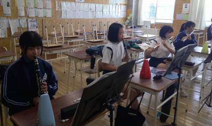 8月19日{月} 9:00 吹奏楽部の活動の様子です。黙々とパート練習に励んでいます!