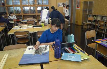 8月21日(水) 9:30 生徒は思い思いの手法で、表現しています。完成が楽しみ!