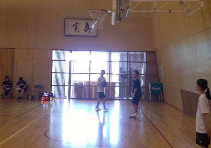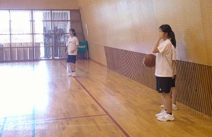 女子バスケットボール部です。基礎練習を中心に活動しています。