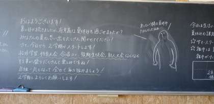 先生や仲間と、夏休みの思い出話をたくさんしまししょう。