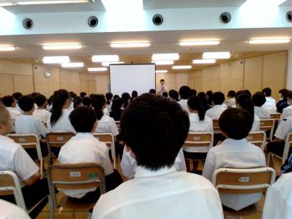 その後、学年スタッフから、生活面、学習面、2学期のスタートに当たってメッセージを送りました。