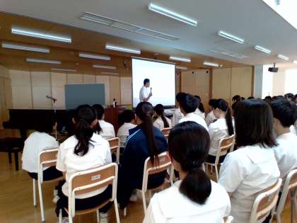 始めに、芝園中の先輩でもある教育実習生から、1年生に向けてのメッセージがありました。