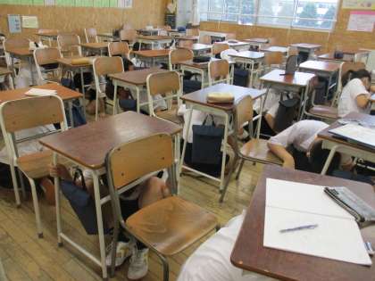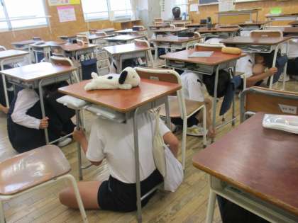 「富山が揺れても 心は動じない」のスローガンのもと、芝園小中合同でのシェイクアウト訓練を行いました。