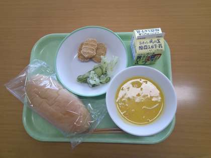 今日の給食 公開日 2024/09/06 更新日 2024/09/06 芝園の一日 9月6日(金) 今日の給食メニューは、 ・コッペパン ・牛乳 ・チキンナゲット ・かぼちゃのポタージュ ・グリーンサラダ です。 みんな大好きチキンナゲット。カラッと揚がって美味しかったです。