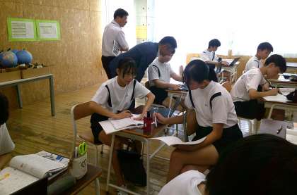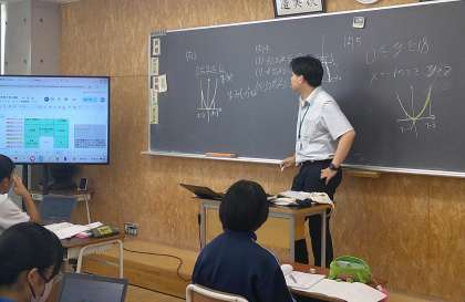 わかるまで、とことん 3−A数学 公開日 2024/09/06 更新日 2024/09/06 芝園の一日 9月6日(金) 2限 3−Aの数学の授業風景です。二次関数について学習をしています。出題された問題を、友達と相談し合ったり、自分でじっくり考えたり、わかるまでとことん学習しています。