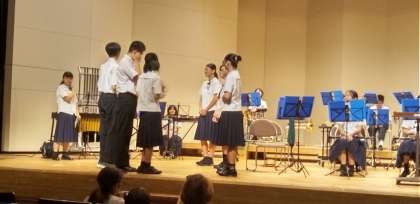 演奏会の後、引退する3年生から顧問の先生に感謝のプレゼントの贈呈がありました。