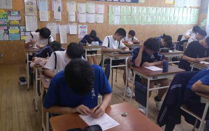 単元の確認 2−C理科 公開日 2024/09/10 更新日 2024/09/10 芝園の一日 9月10日(火) 2限 2−Cの理科の授業風景です。単元の確認問題に挑戦しています。ものすごい集中力。やるね、2年生!