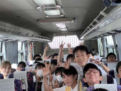 9月11日(水) 9:00 西インターから高速道路にのります。みんな笑顔です!