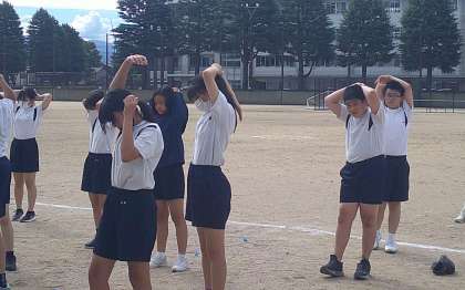 実習生 頑張っています! 1−C体育 公開日 2024/09/11 更新日 2024/09/11 芝園の一日 9月11日(水) 2限 1−Cの体育の授業風景です。ソフトボールの学習をしています。教育実習生が授業をしています。みんなと一緒にウォーミングアップ。