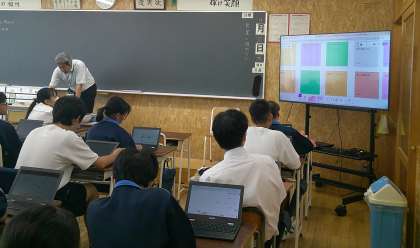 「盆土産」の登場人物について、端末を効果的に活用して、他の人の考えを参考にしながら読み深めています。