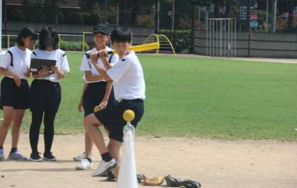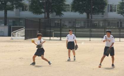 1−Aの体育の授業風景です。教育実習生が研究授業をしました。生徒は積極的に活動をしていました。実習生の先生のおかげで、ソフトボールが大好きです!(画像は、以前の授業の様子です)