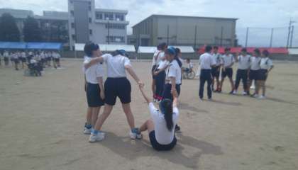 心を合わせて 1 3年学年練習 公開日 2024/09/18 更新日 2024/09/18 芝園の一日 9月18日(水) 3限 3年生の学年種目の練習風景です。3年生全員が参加し、力を合わせて1位を目指します。