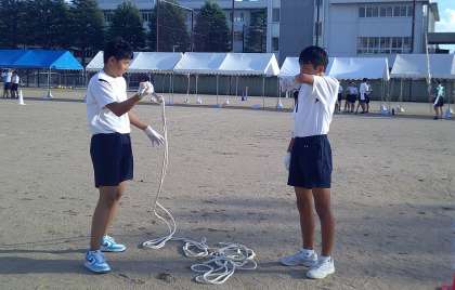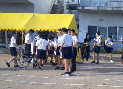 縁の下の力持ち1 用具係 公開日 2024/09/20 更新日 2024/09/20 芝園の一日 9月20日(金) 用具係です。プログラムを頭に入れ、速やかに用具の運搬を行う、重要な係です。綿密な打合せをしています。