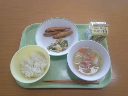 ・野菜スープ煮 ・グリーンアスパラのごまだれ  です。