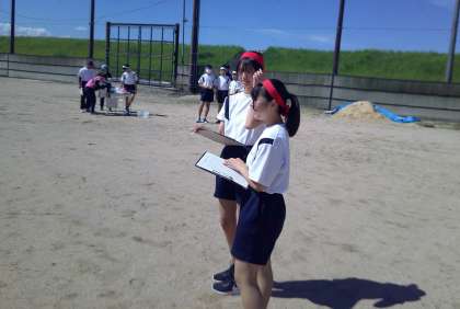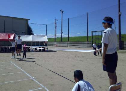 短距離走でも、出発、決勝審判、記録など多くの生徒が活躍しています。自分たちの手で創り上げる体育大会です!