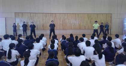 3年 学年終礼 その4 公開日 2024/09/25 更新日 2024/09/25 芝園の一日 9月25日(水) 今度こそ終わりと思った瞬間、再び「ちょっと、待った〜」の声。 今度は、先生方からです。先生から、よく頑張っている3年生にエールです。応援の振り付けも決まってます。カッコいい!