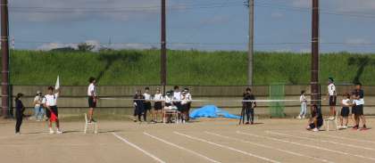 体育大会 8 公開日 2024/09/26 更新日 2024/09/26 芝園の一日 9月26日(木) プログラム3番 1年生の徒競走です。決勝審判や記録の生徒の準備も完了しました。いざ、スタート!まずは女子です。