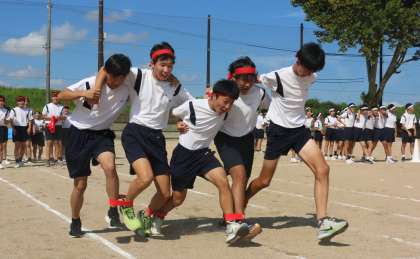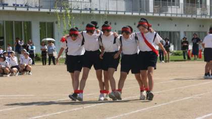 体育大会20(3学年種目 旭日団) 公開日 2024/09/27 更新日 2024/09/27 芝園の一日 9月27日(金) 昨日行った体育大会の様子です。 プログラム8番 3学年種目「シバリンピック〜近代三種〜」です。ムカデ競走、球運び、車椅子競争など、様々な種目でたすきをつなぎます。画像は、旭日団です。