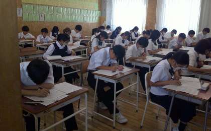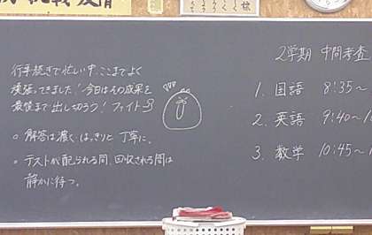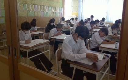 2学期中間考査が始まりました。画像は1年生です。テストに臨む態度も、ずいぶん中学生らしく、きりりとしています。