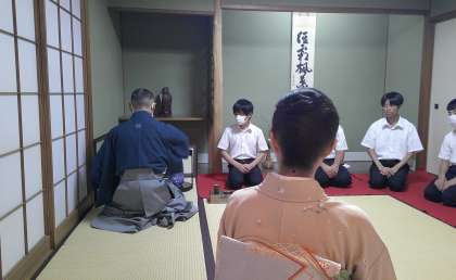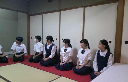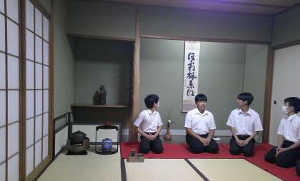 茶道部は、本校の茶道部講師の先生のご縁で 県庁のお茶会にご招待いただきました。ちょっぴり緊張気味でしたが、御軸やお花、お菓子の説明を聞きながら、ゆったりとした時間に自然と笑みがこぼれます。