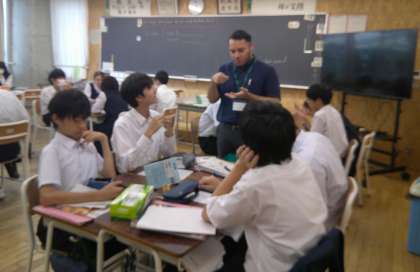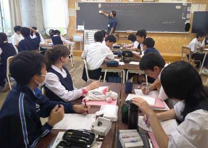 2−Cの英語の授業風景です。今日はALTの先生と一緒に授業です。