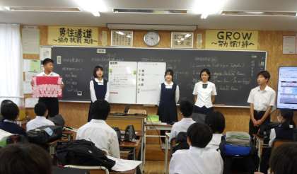 感謝のメッセージ 3年旭日団 公開日 2024/10/03 更新日 2024/10/03 芝園の一日 10月3日(木) 本日終学活時に、3年生から体育大会でお世話になった1年生に感謝のメッセージを伝えました。画像は旭日団です。