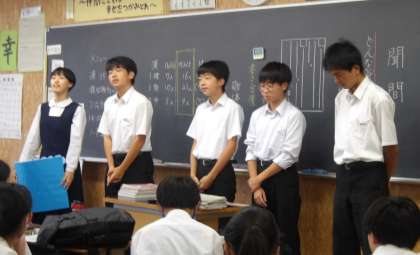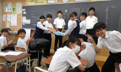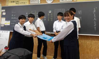 3年青雲団から1−Bのみなさんへ、感謝のメッセージ伝えています。1年生も3年生も弾ける笑顔ですね。!