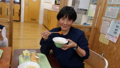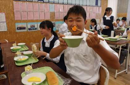 3−Bでは、なんと、3人もの生徒や先生のスープの中にハート型のラッキーにんじんを発見!幸せな気持ちになりますね。
