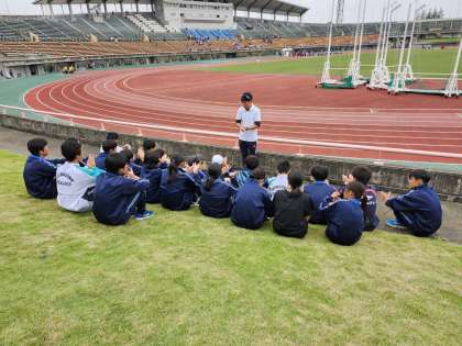 富山県中学校駅伝大会を終えて 公開日 2024/10/05 更新日 2024/10/05 芝園の一日 10月5日(土) 大会終了後のミーティングです。顧問の先生、そして部長からの話がありました。活動を引っ張ってくれた3年生、最後まで頑張る姿は1、2年生の手本でした。ありがとう!後輩たちは、今年の悔しさをバネにさらに成長しましょう。 保護者の皆さま、応援ありがとうございました。