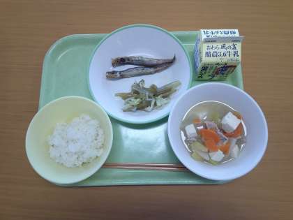 今日の給食 公開日 2024/10/08 更新日 2024/10/08 芝園の一日 10月8日(火) 今日の給食メニューは、 ・ごはん ・牛乳 ・ししゃもの米粉揚げ ・さつま汁 ・茎わかめの酢の物 です。 茎わかめはこりっとした食感がよく、さっぱりと美味しかったです。