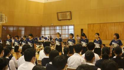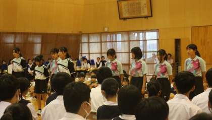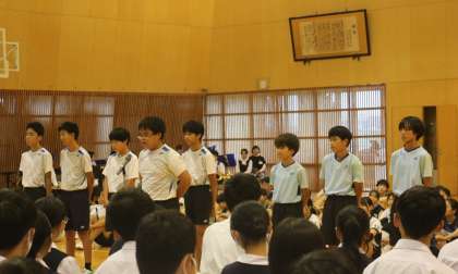 新人大会壮行会 その3 公開日 2024/10/08 更新日 2024/10/08 芝園の一日 10月8日(火) バドミントン部、男子ソフトテニス部、女子ソフトテニス部です。大会では、自分の力をすべて出し切ってください!
