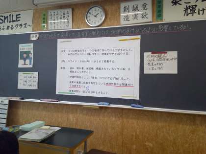 研究授業を行いました 4 2−A社会 公開日 2024/10/09 更新日 2024/10/09 芝園の一日 10月9日(水) 5限 生徒は、教科書や地図帳などの資料からキーワードを探して情報を集中し、考察しています。社会科の見方、考え方をはたらかせながら、課題の追究をしています。 研究授業の後は、教員で研修をしました。今回の授業をとおして見つかった課題を解決し、さらに授業改善に努めていきたいと思います。