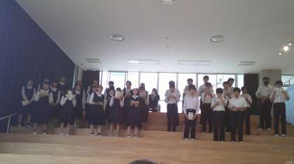 放課後、芝中はステキな歌声で包まれています。画像は、3−Cです。今日は芝園小学校の「表現の舞台」で練習です。