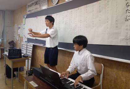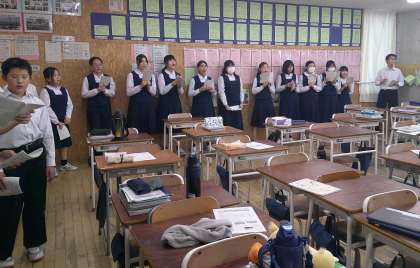 10月18日(金) 放課後 2−Bです。円を作って、互いの顔をみながら練習をしています。