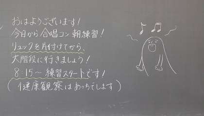 合唱 朝練習始まりました! 2−B 公開日 2024/10/21 更新日 2024/10/21 芝園の一日 10月21日(月) 8:15 おはようございます。今日から、合唱朝練習が開始しました。どのクラスも、リーダーを中心に練習に励んでいます。上手くいくこともいかないこともるでしょう。でも、日々のクラスの関わりこそが仲間や担任の先生との絆を深めます。みんなで、最高の合唱、最高の団結を目指していきましょう! 画像は、2−Bです。朝から美しい合唱が大階段を包んでいました。ステキですね。