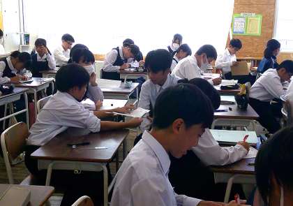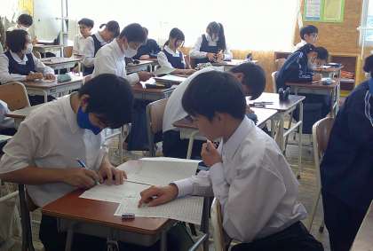 単語練習も楽しいな 1−B英語 公開日 2024/10/21 更新日 2024/10/21 芝園の一日 10月21日(月) 2限 1−Bの英語の授業風景です。授業の始めに行う英単語テスト。難易度のレベルに合わせてチャレンジ。「今日は満点だった!」と、楽しみながら力を付けています。