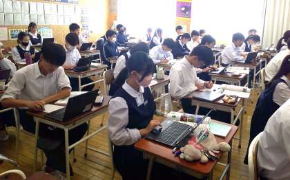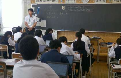 3−Aの理科の授業風景です。力学的エネルギーについて学習をしています。