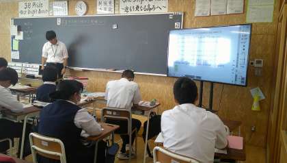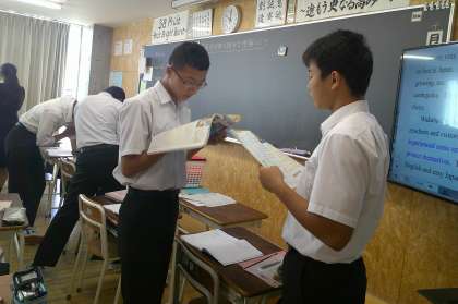 デジタル教科書を活用して 3−B英語 公開日 2024/10/21 更新日 2024/10/21 芝園の一日 10月21日(月) 2限 3−Bの英語の授業風景です。デジタル教科書を使うと、音読の練習も分かりやすくなります。今日はまずは、一人で練習をした後、ペアで確認しています。