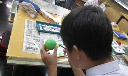 よく観察して 2 1−B美術 公開日 2024/10/23 更新日 2024/10/23 芝園の一日 10月23日(水) 1限 水で濡らして滑らかさを表現したり、細筆で色の違いを細かく描いたりと、一人一人の工夫が見られます。