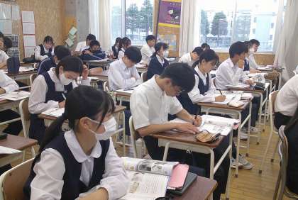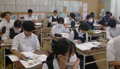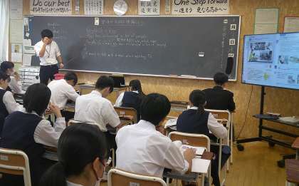 3−Aの英語の授業風景です。関係代名詞の学習をしています。難しい内容ですが、生徒は集中しています!いいね、3年生!